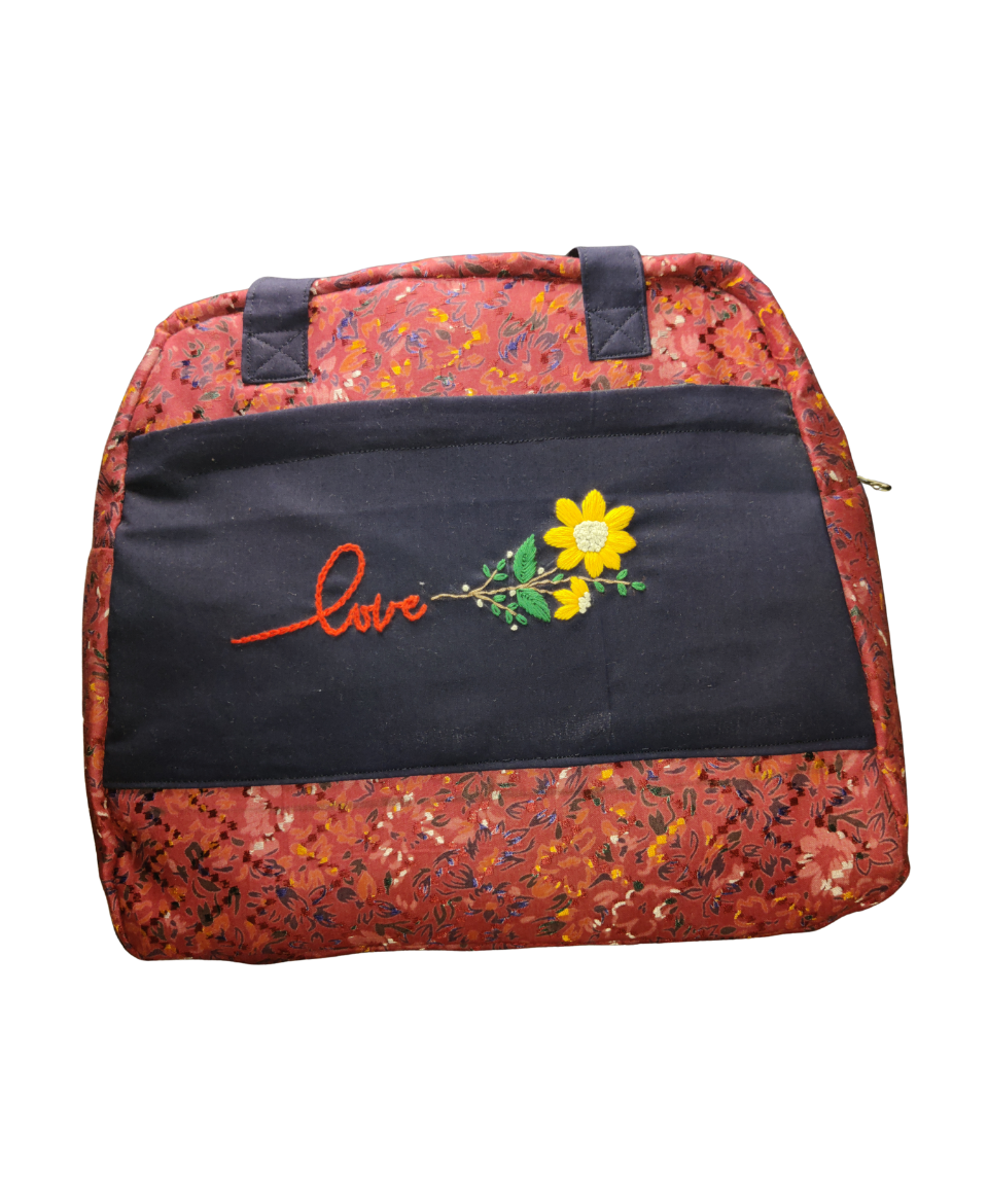 Hand embroidery is a slow, intentional art—each stitch guided by experience, patience, and creativity. The floral motif embroidered on this bag symbolizes warmth, affection, and everyday joy. Unlike machine-made patterns, the slight variations in stitching are a mark of authenticity, reminding you that this bag was created by human hands, not mass production.