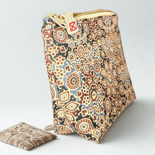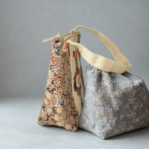 This hand embroidered cotton pouch bag by SavaliKraft is a refined blend of Indian craftsmanship and everyday practicality. Carefully handcrafted by artisans, the detailed floral embroidery adds cultural depth while the printed cotton fabric enhances durability and visual appeal.