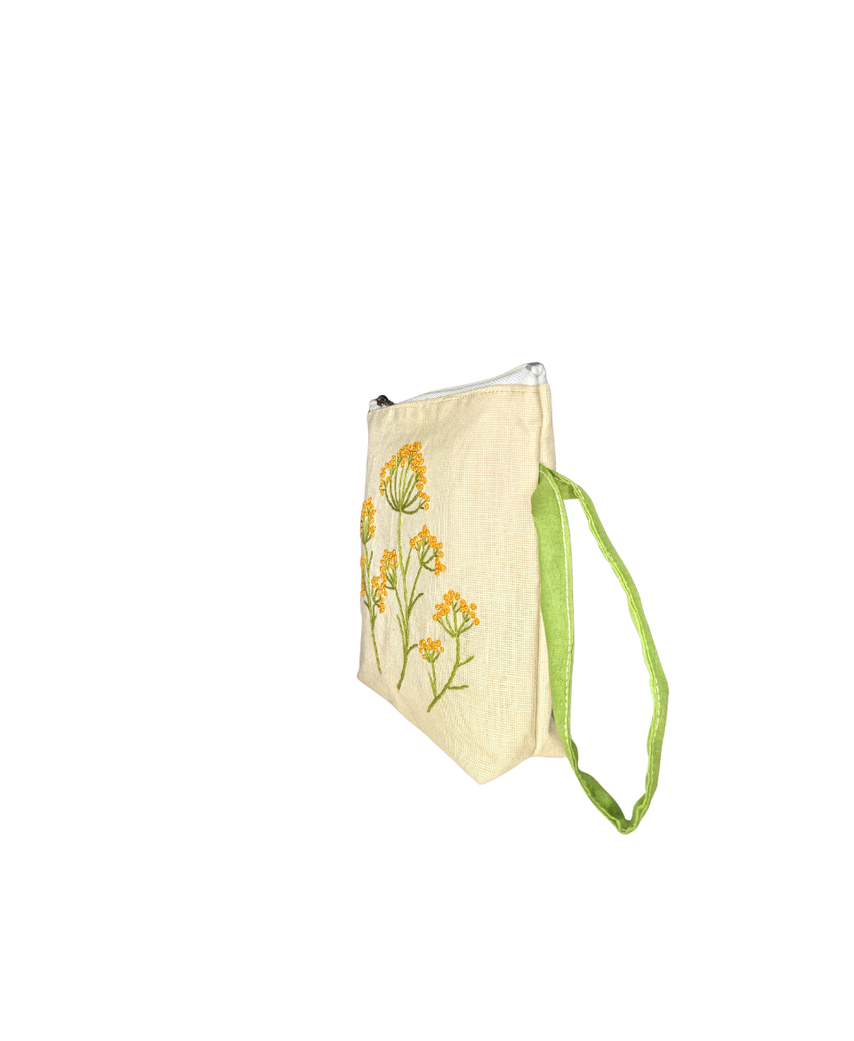 This hand embroidered cotton pouch reflects the quiet beauty of Indian craftsmanship. Each floral motif is carefully stitched by skilled artisans, making every piece subtly unique. The natural cotton exterior feels soft yet durable, while the neatly finished interior ensures everyday practicality. Designed for modern lifestyles, this pouch blends traditional embroidery with clean, functional design.