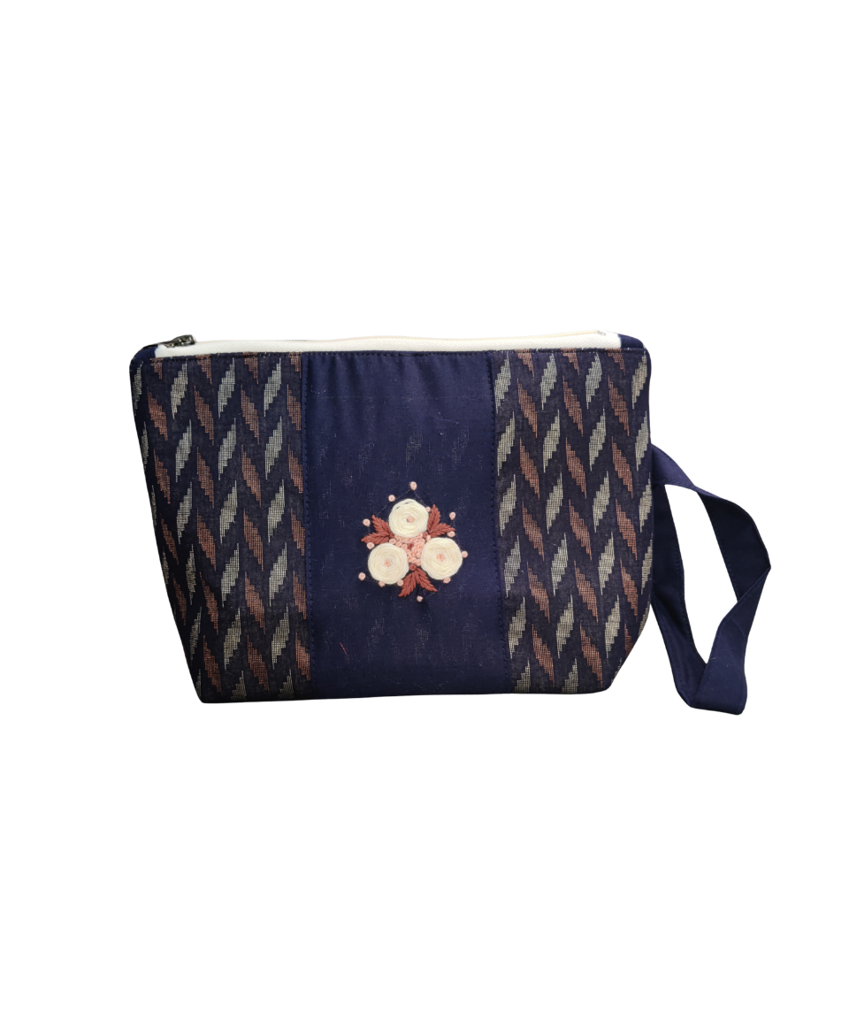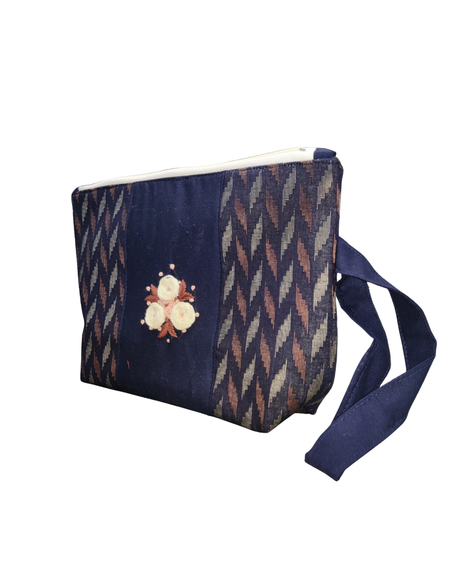 This hand embroidered pouch bag fits seamlessly into urban and semi-urban lifestyles where practicality meets conscious fashion.