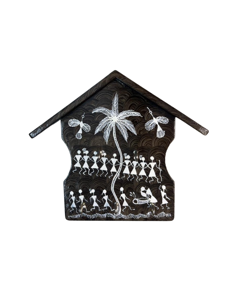 Handcrafted Warli Painting Wooden Key Holder with 7 Hooks