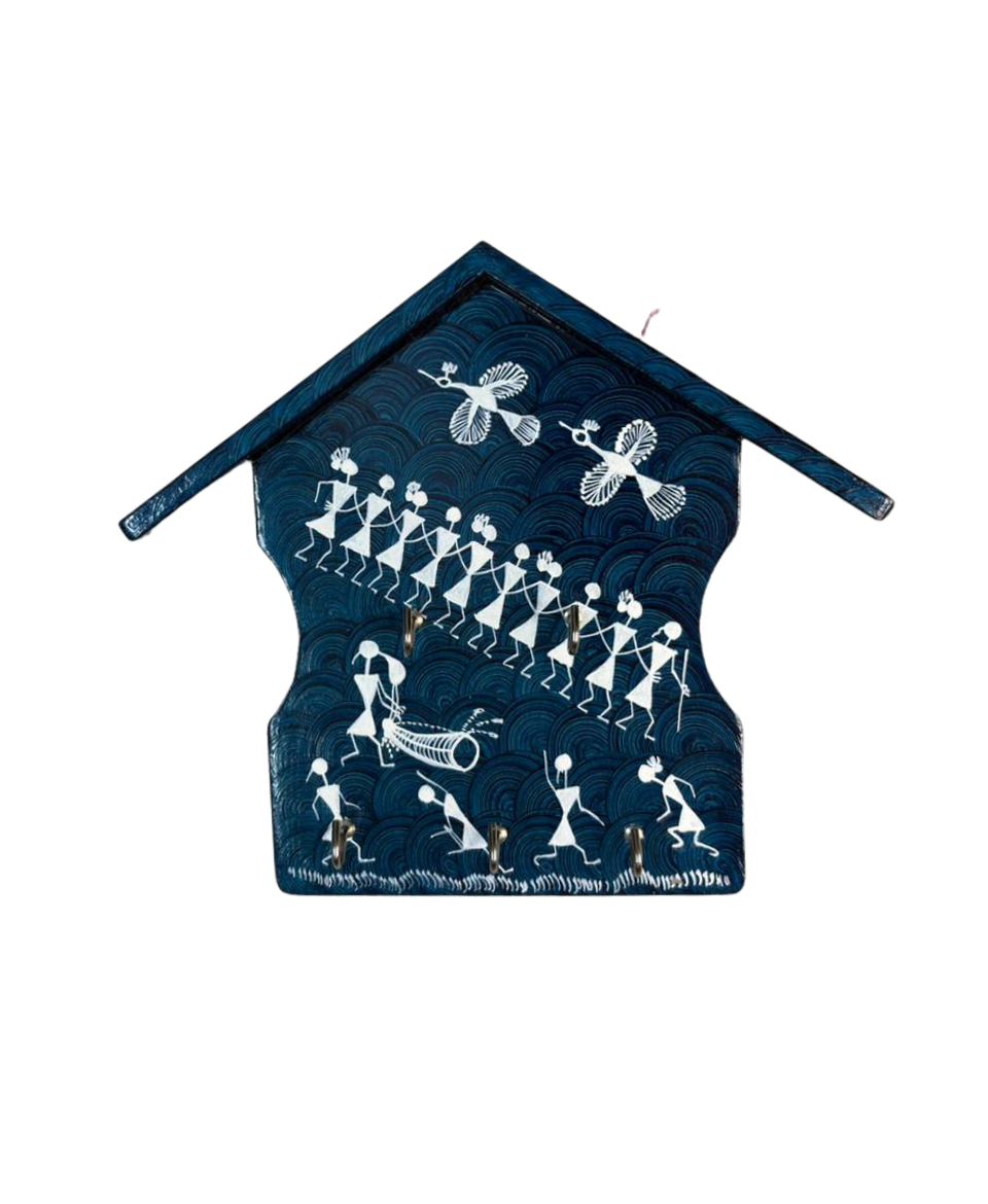 Inspired by the rhythmic storytelling of traditional Warli tribal art, this handcrafted Warli Painting Wooden Key Holder brings the soul of rural India into your everyday living space. Each piece reflects scenes of community life, nature, and harmony—painted with care by skilled artisans who carry forward generations of folk-art heritage.